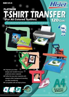 สั่งซื้อ Hi-jet T-SHIRT TRANSFER FOR ALL COLORED กระดาษเคมีรีดสื้อสำหรับผ้าสีเข้ม 120 แกรม ( 5 Sheets ) ได้แล้ววันนี้ พร้อมส่วนลดและราคาถูกใจคุณลูกค้า สั่งซื้อออนไลน์ >>