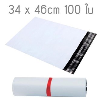 - ชื่อสินค้า ถุงไปรษณีย์ ซองจดหมาย พลาสติกกันน้ำ พร้อมแถบกาว ขนาด 34 x 46 เซนติเมตร 100 ใบ - ขาว